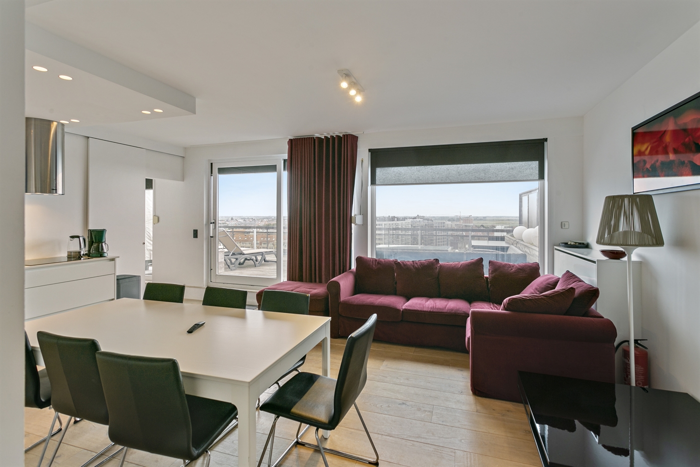 Un penthouse aux finitions sublimes, avec des terrasses baignées de soleil. Exceptionnellementgrande terrasse sud avec une vue phénoménale sur les polders et la ligne d'horizon de Bruges. Unsalon très clair avec une cuisine ouverte moderne. 2 grandes chambres et 1 petite chambre. Nombreuxplacards. 2 salles de bains complètes dont 1 avec baignoire et toilettes, et l'autre avec douche.Toilettes séparées. En bref, un plaisir sans souci dans l'endroit le plus luxueux de Blankenberge.
